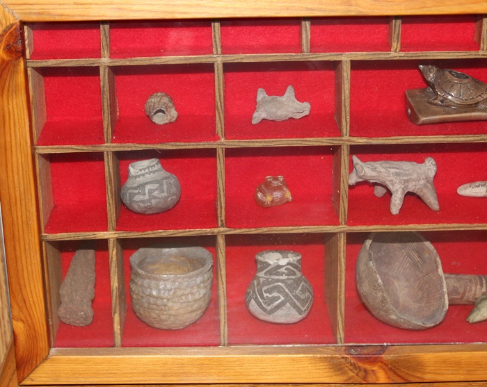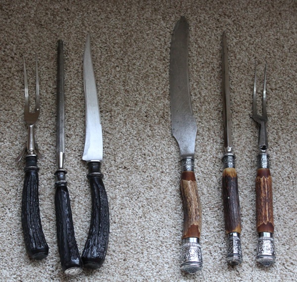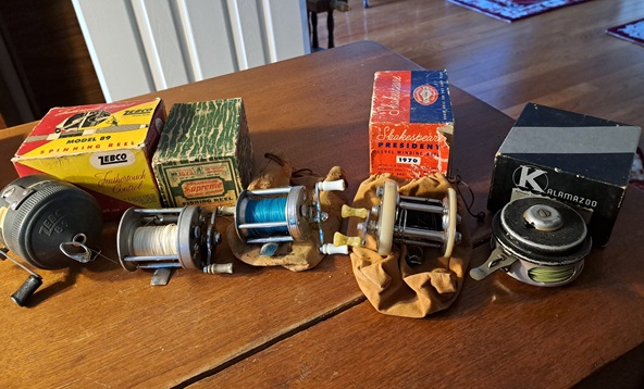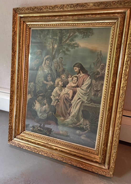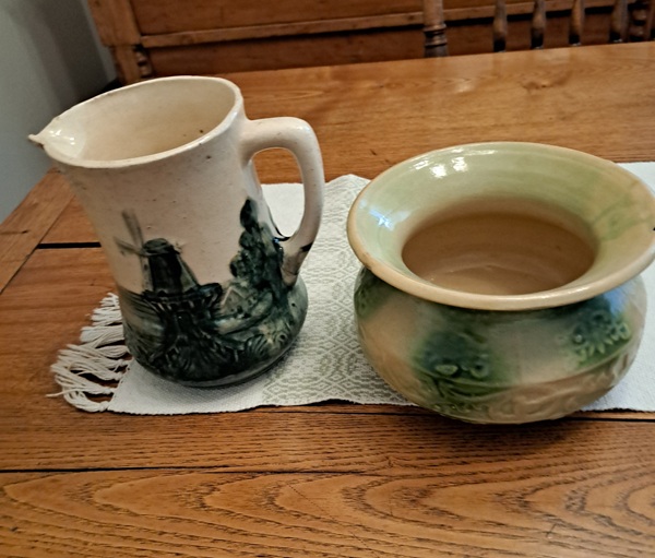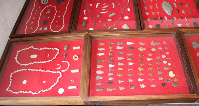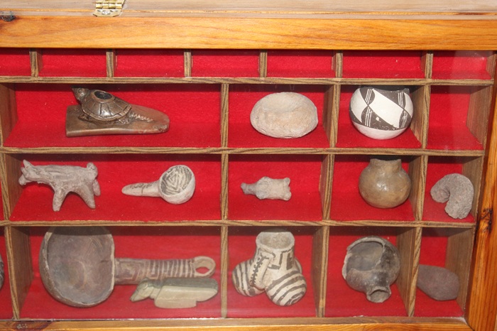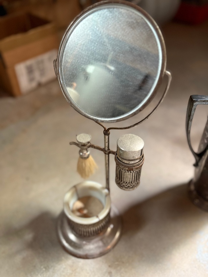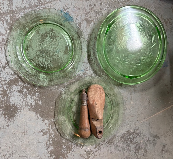 COLLECTIBLES, ART, POINTS: Wonderful collection of Colorado found arrowhead, points, and beads; several Navajo rugs; sterling silver flatware and serving pieces; old post card albums; ephemera; early books; costume jewelry; several pieces of good vintage clothing; military uniform; several double sided porcelain advertising signs; original framed art; western art; bronzes; antique and vintage beer trays; rare circa 1900 mechanical porcelain doll; ivory & marble carved figurines; W.R.A.C. 10ga. signal cast iron canon; hat pins; Seth Thomas banjo clock; mission style leaded glass table lamp; early floor lamps; antique radios & speakers; collection of Harley Davidson leather riding garments; antique fishing reels; wonderful stoneware & crockery; butter churns & primitive kitchen collectibles; cast iron & tin toys; “Wallace” cowboy china dishes; oil lamps and lanterns; art glass & pottery; antique tools;
