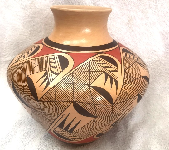 POTTERY – Featured are: Beautiful Featherwoman wedding vase; Outstanding polychrome Blue Corn; 16” Frogwoman Wedding vase; 4 OUTSTANDING frogwoman bowls and vases; 22” Lucy McKelvey; Joseph Lonewolf; 2-Camilion Tafoya; Nice Tom Polacca; Rare Featherwoman and Sylvia piece; Nice Large Sofia and Rafael Medina; Lawrence Namoki; 2- Maria (Martinez) Poveka; 2- Fine Sylvia Naha; Polychrome Carmelita Dunlap; Burel Naha; Fine Cheyenne Jim Nativity; Nice Paul Naranjo; Margaret & Luther Gutierrez; Debbie Clashin; Steve Lucas; Nellie Nampeyo; Rosemary Lonewolf; Grace Medicine Flower & Camilio Tafoya; Nathan Youngblood; Jody & Polly Folwell; Ron Suazo; Goldenrod; Antoinette Silas; Lonnie Vigil; Preston Duwyenie; Robert Tenorio; Myron Saracino; Donna Robertson; Dalawepi; Wallace Nez; Stella Teller; Beverly Garcia; Robert Aguilar; Vidal Aguilar; Helen Henderson; Yepa; Mary Cain; Stella Chavarria, Cecellion; Denny Gutierrez, Eric Tafoya, Adelle Nampeyo; plus many many more. The featured potters are from the pueblos of Santa Clara, San Ildefonso, Jemez, Acoma, Zia, and Hopi etc. This is just sampling of artists to be featured. Great Selection!