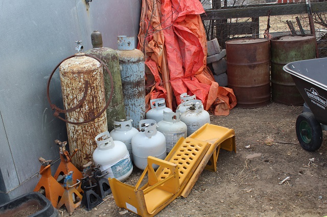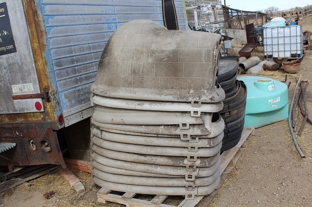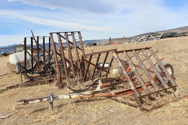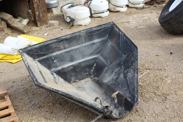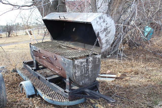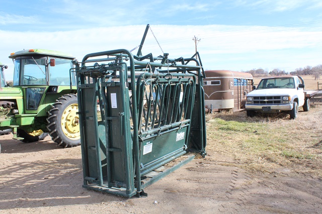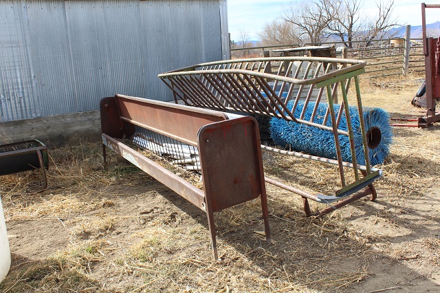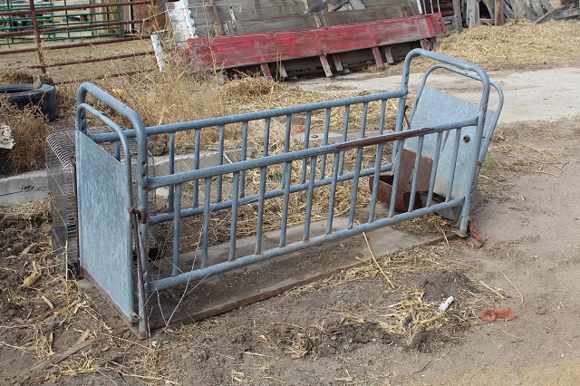 LIVESTOCK EQUIPMENT & MISCELLANEOUS: Like new Behlen cattle squeeze chute; calf huts; stock tanks; sheep and goat hay feeders; gates & livestock panels; farrowing crate; hog troughs; “T” posts; wooden posts; 60 gallon upright air compressor; large roll-around toolbox; miscellaneous shop tools; car ramps; large trailer mounted hog roaster; Lots of scrap iron; scrap aluminum; gated pipe; flagstone; plus much more too numerous to mention;
