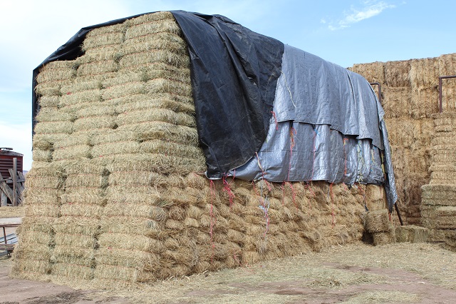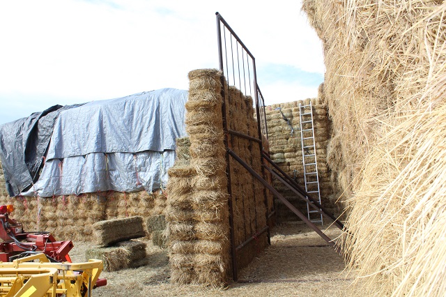 HAY: 400 plus 3′ x 3′ x 8′ bales of grass hay; approx. 320 small bales of grass hay; (2) portable haybale stack racks;