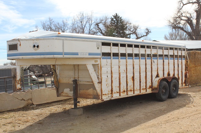 TRAILERS & TRUCKS: 1997 20ft. flatbed 5th wheel trailer w/fold-up ramps; (2) Titan 20′ gooseneck livestock trailers; 24ft. heavy duty tandem axle flat-bed trailer; 16′ WW bumper pull livestock trailer; homemade single axle trailer; 1975 Ford F-750 side dump truck with grain box and silage boards; 1975 Chevy C60 farm truck with grain box and silage boards; Chevy C50 truck with 12′ refrigerated box (refrigerated box works good) – truck needs work no title; 1994 Chevy 2500 gas flat-bed truck – needs work;